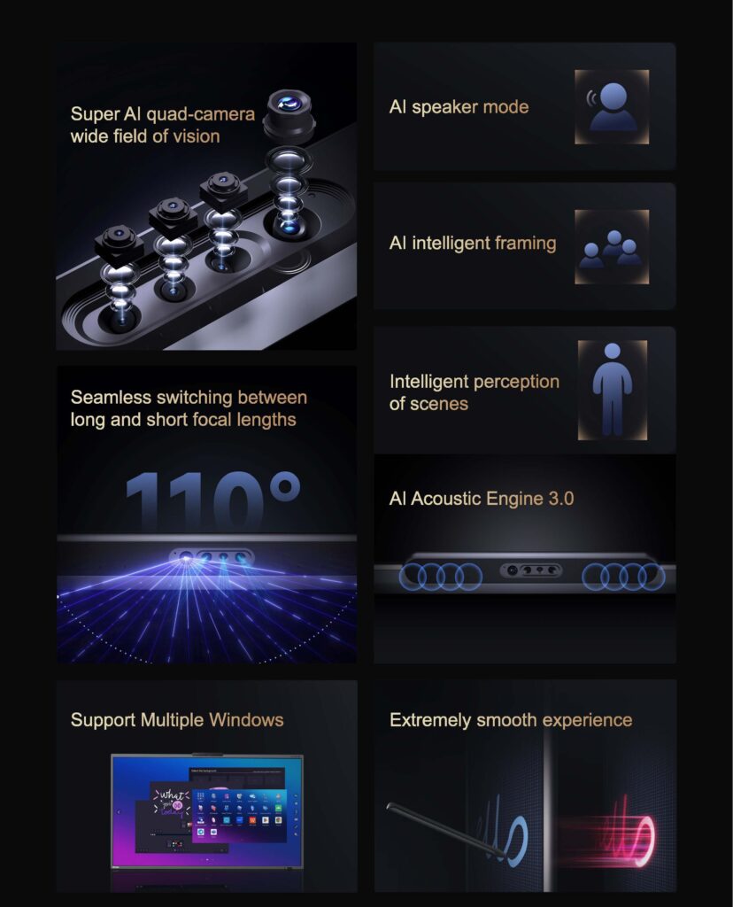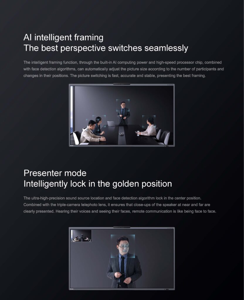 8-megapixel auxiliary cameras, which support speaker tracking and an intelligent