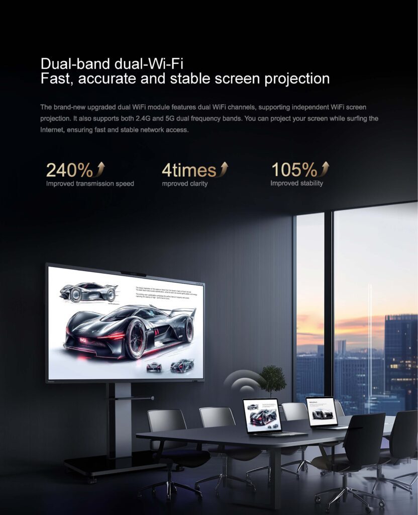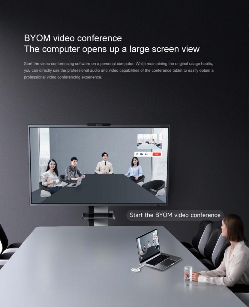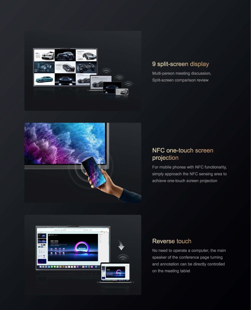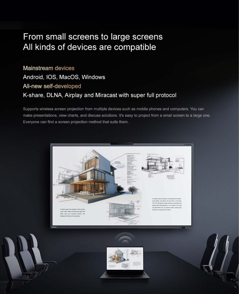 Scan the code to share quickly – Scan the code with your mobile phone, and with just one click, upload the pictures, PPTS and other items on your phone to the meeting tablet. Sharing and display are more stable and fast.