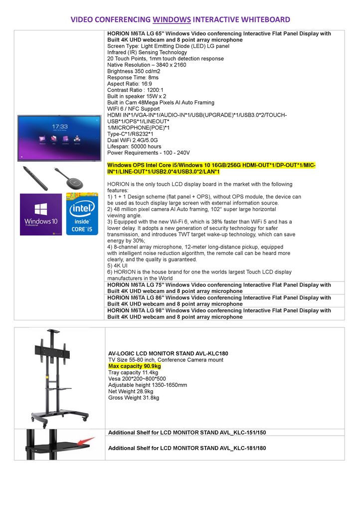 HORION M6TA LG 86″ Windows Video conferencing Interactive Flat Panel Display