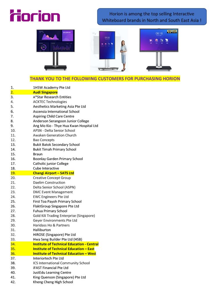 5) 4K UI 6) HORION is the house brand for one the worlds largest Touch LCD display manufacturers in the World